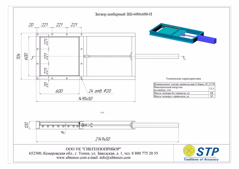 Наименование Габариты проходного окна шибера, мм Состав затвора шиберного ЗШ Масса Максимальная нагрузка на шибер, т/м2